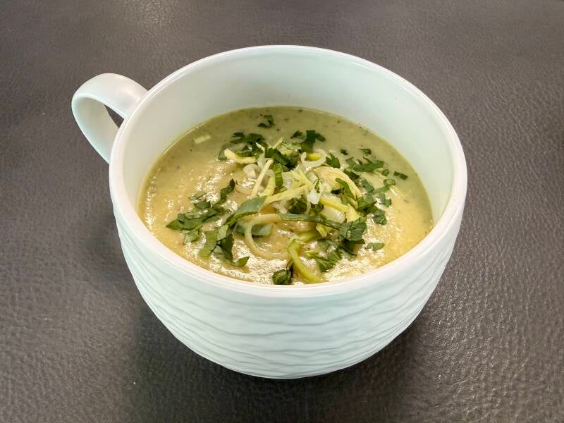 Snipper de ui en pers de knoflook. Verwarm de olijfolie in een pan en fruit de ui en de knoflook even aan. Snijd de prei in ringen. Houd 1/4 van de prei apart voor de garnering, voeg de rest van de prei bij de pan en bak dit even mee. Schil de aardappelen en snijd in stukken. Voeg dit samen met de bouillon bij de pan en breng aan de kook. Laat dit hierna op zachtvuur ongeveer 15 minuten koken. Pureer de soep met een staafmixer glad. Voeg de grove mosterd toe en pureer nog even door zodat de mosterd goed gemengd is. Voeg de kookzuivel en een beetje peper toe en breng nog even tot het kookpunt. Schep de mosterdsoep in de kommen en top af met wat ringen prei en verse peterselie. Eet smakelijk!